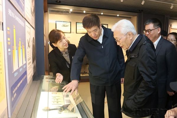 民航局党组书记、局长宋志勇与两航起义人员、民航局原局长胡逸洲一同观看展品